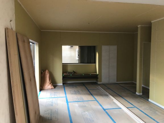 内装はDKと和室を改修してLDKに変更。キッチン、トイレ、浴室、洗面化粧台交換、出窓を作り付けのTV置場へ。外装は外装塗装工事、玄関ドア交換。